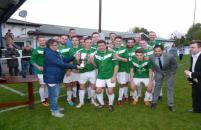 Perrywood captain Matt Drew receiving the trophy from Frank Southam